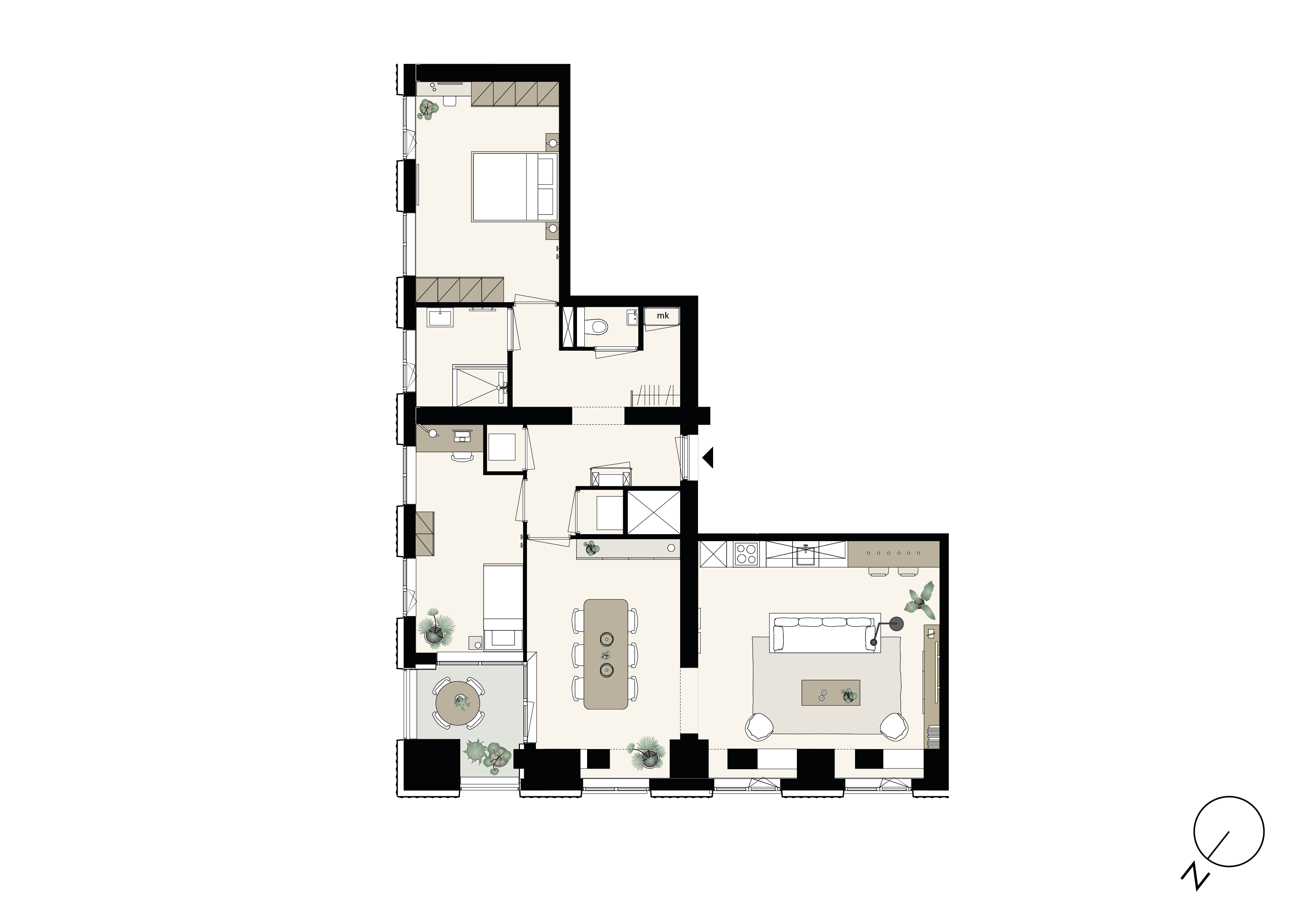 Dit 3-kamer hoekappartement van circa 99 m² ligt in Toren West. Het appartement is ingedeeld met een royale woonkeuken, een lounge, twee ruime slaapkamers, een badkamer en apart toilet. In de bergkast kun je de wasmachine en de wasdroger op elkaar plaatsen. Vanuit de lounge en woonkeuken heb je een fraai uitzicht op de Koekamp. De constructieve liggers, die deels langs de ramen lopen, zorgen voor privacy, maar ook voor een stoere look.